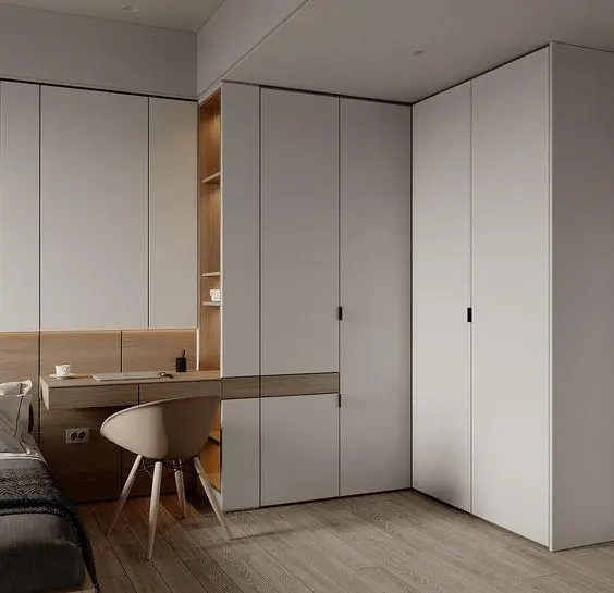 2.地面和柜子水平垂直,嵌入式衣柜或其他一些嵌入墙体的柜子好处不少,既增大了柜子内部的空间,又显得柜体简洁、大方。应注意安放柜子的地面和柜子侧面的墙体必须水平和垂直。否则,等安装柜子的时候,会很难处理缝隙,勉强填补缝隙,视觉就有扭曲,显得很粗糙,工艺不精细,效果就会大打折扣。