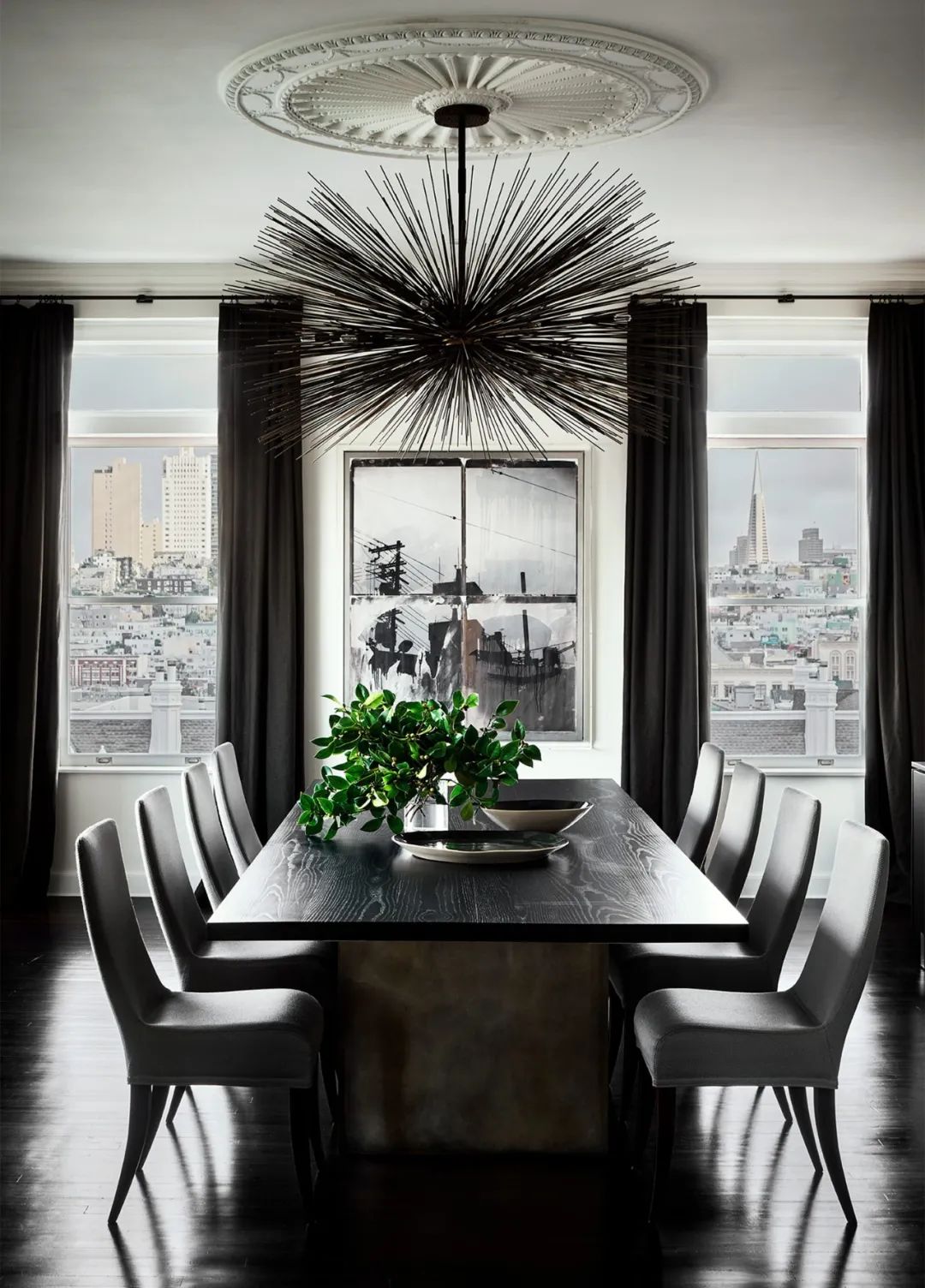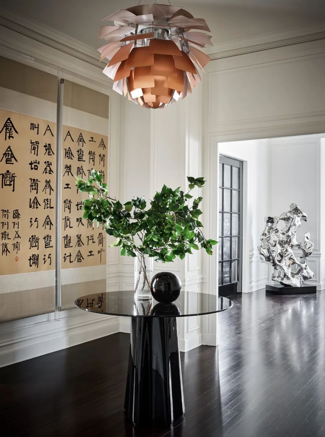每一个功能区的吊灯都充满趣味性与设计感,与客厅相连的廊厅独具东方韵味。让人不禁赞叹设计师的构思,将每一个空间呈现的独立自由而又相互联系。
