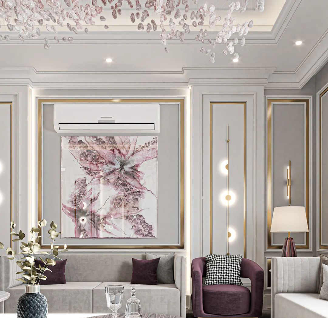 餐厅除了餐椅用了朱砂红色外,几乎全为白色的饰面,营造干净、雅致的氛围,细节之处用金属元素来打造立面的局部设计,让空间层次更为充实。