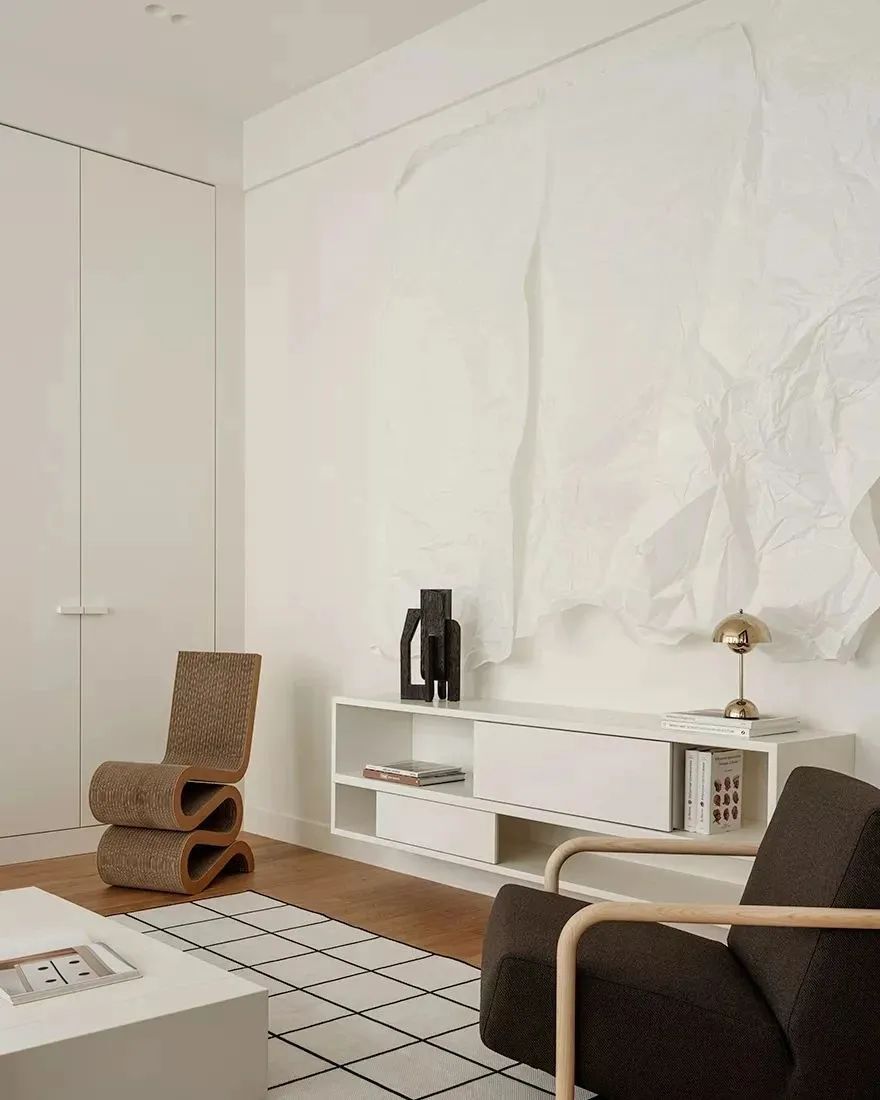 这套充满艺术气息的公寓是Snezhana Zucetsaeva和Evgenia Dubrovskaya新作,公寓的总面积为70㎡,居住者是一位年轻女性。设计师利用干净利落的几何形状塑造空间,营造出现代极简主义下的几何美感,形成一种简洁高级的视觉体验。