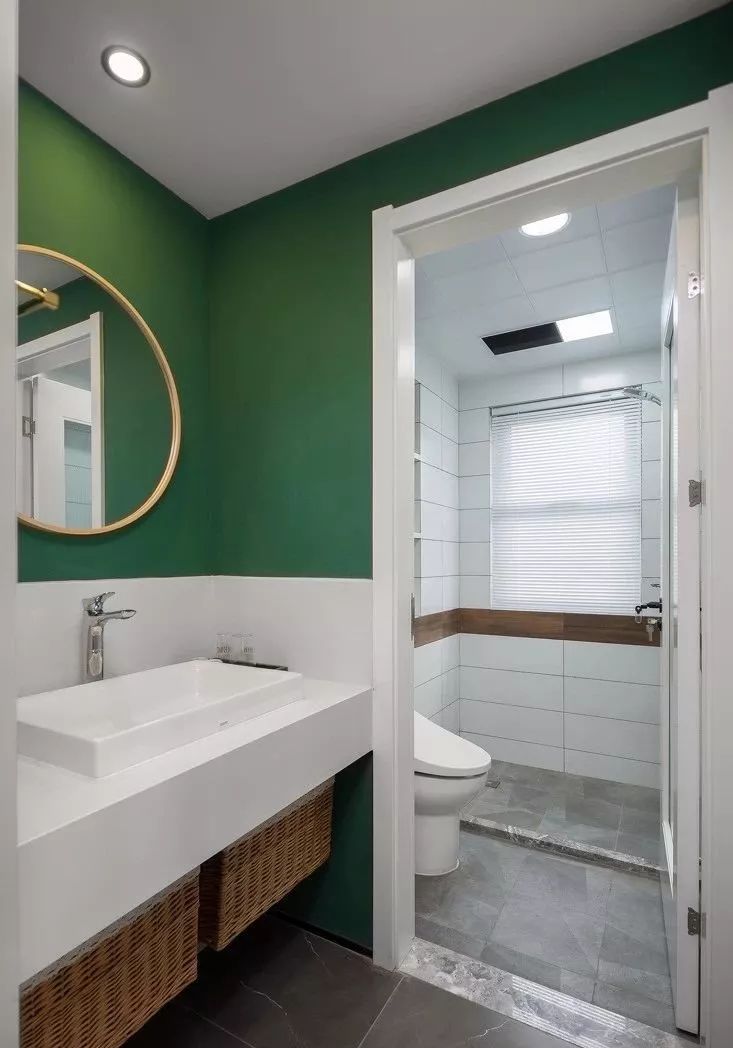 把洗脸台单独隔离出去,变成彻底的干区。