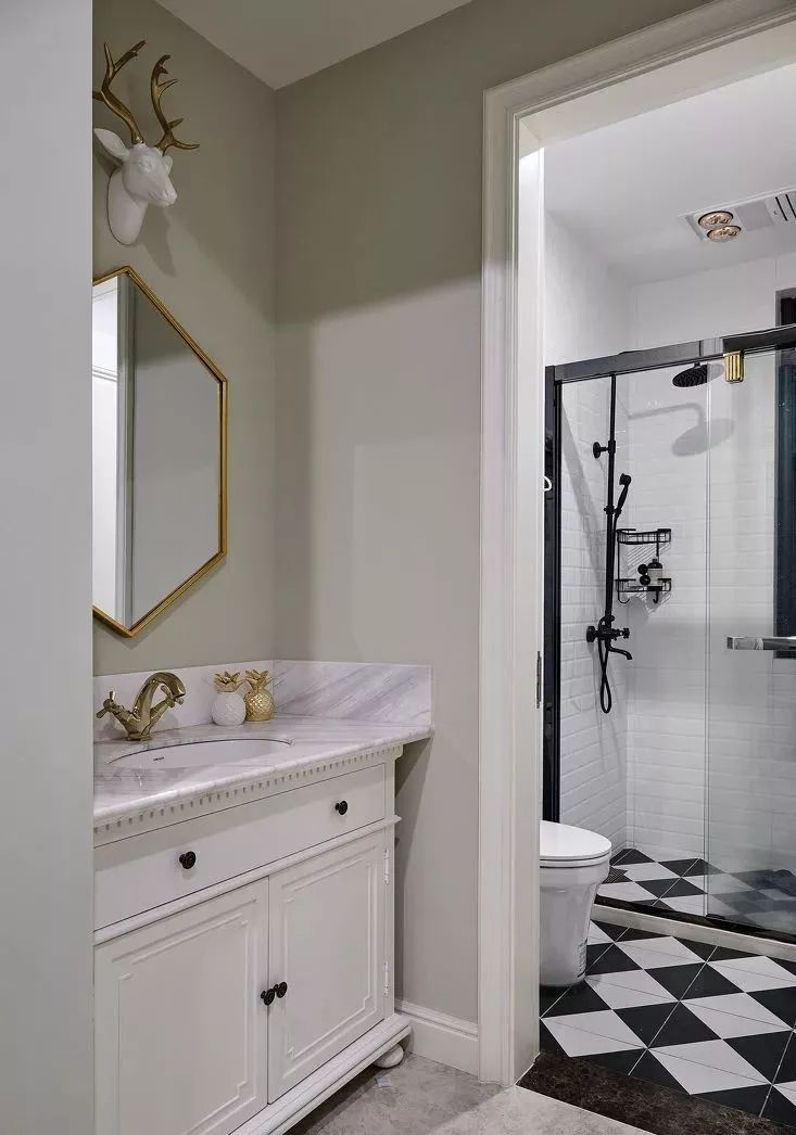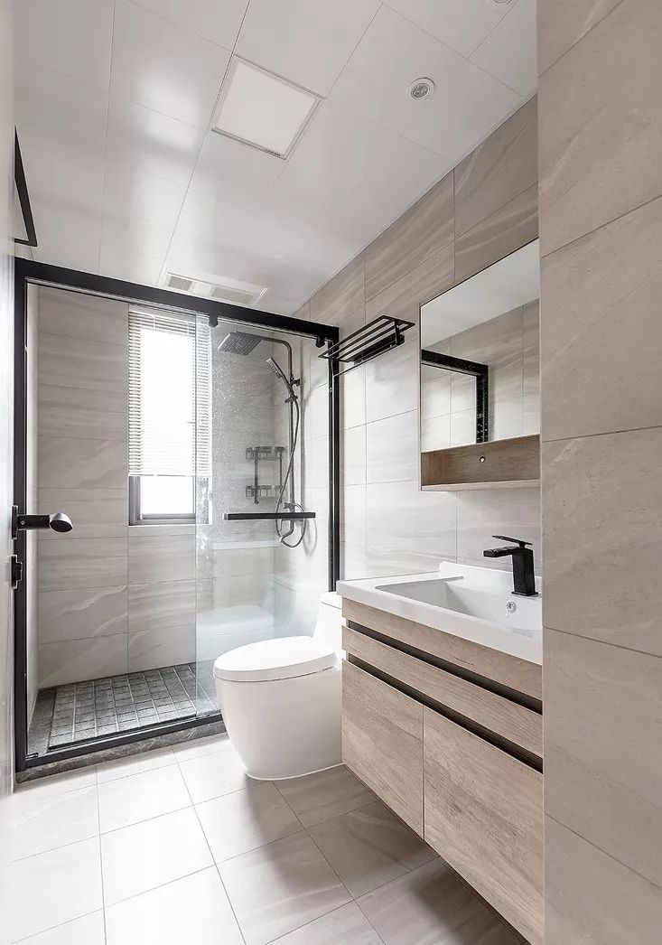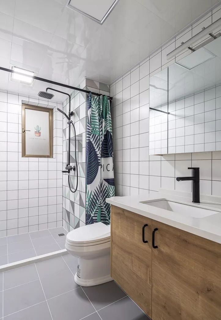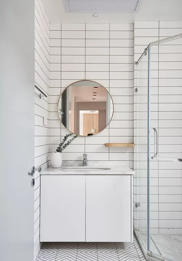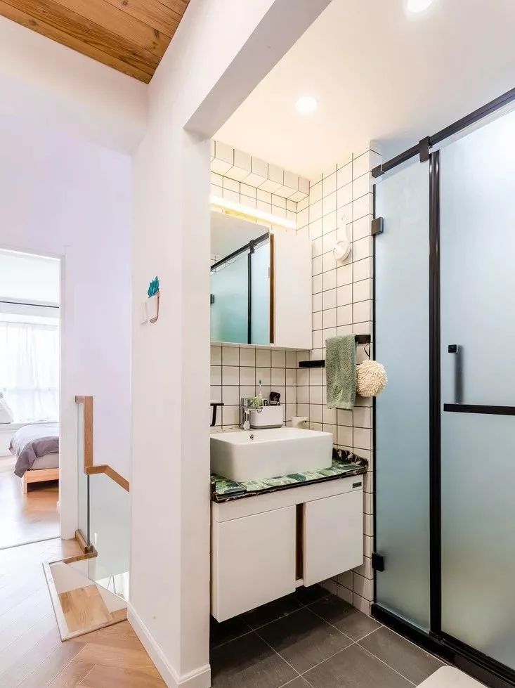 虽然空间小,干湿分离也是可以做到的,最简单的方法就是做淋浴房。推荐选择U型或钻石型,尺寸不小于80cm*80cm的淋浴房。可以通过减少边角,让空间变得灵活,分区不会太死板。
