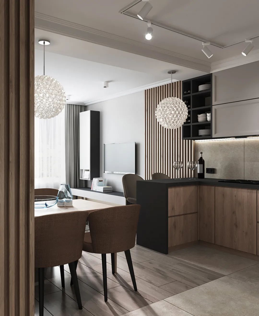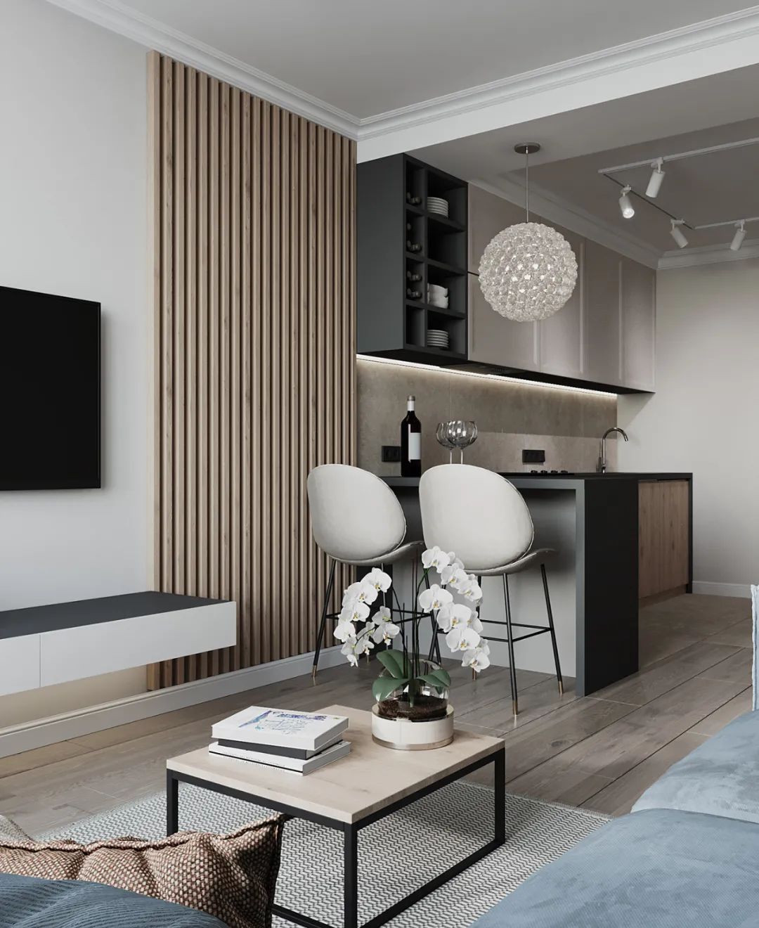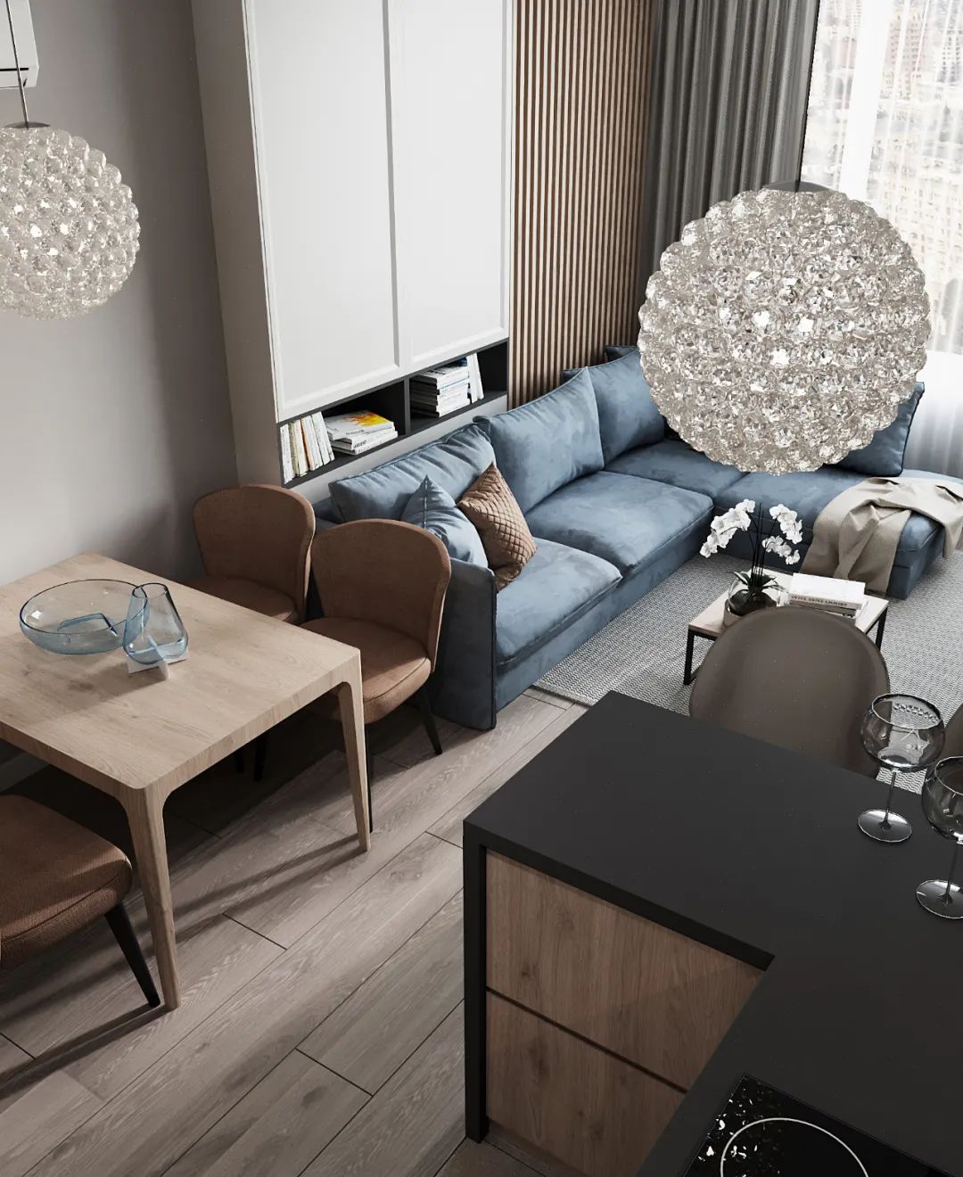 整个公寓的内饰部分,灯具采用了意大利的Azzardo、乌克兰的Anzazo、比利时的Lucide,更能增添一份时尚感。